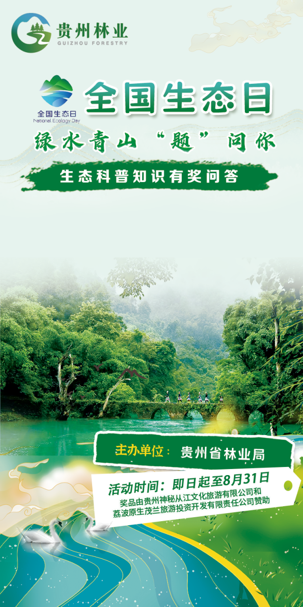 3、題目圍繞貴州森林、草原、濕地、野生動植物等生態科普知識及相關政策法規展開。獎品為茂蘭景區、岜沙苗寨景區門票,1個賬號僅可獲獎一次。