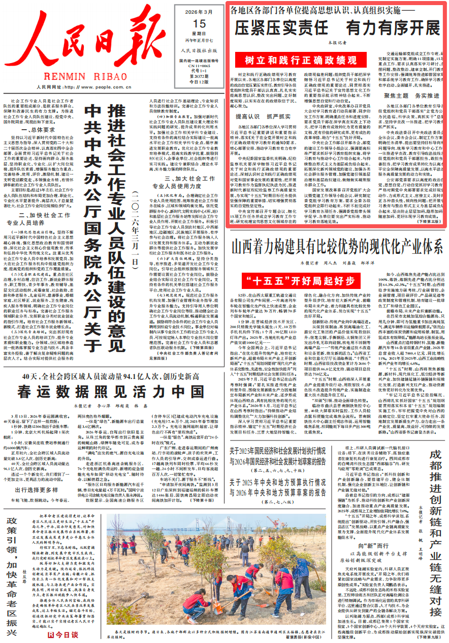 原刊於《人民日報》(2026年03月15日 第 01 版)
