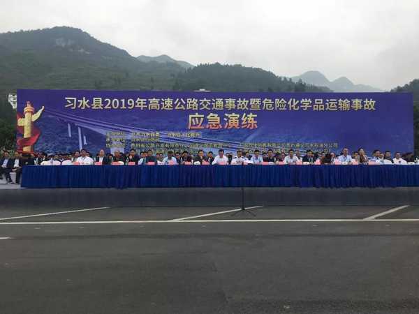 习水县2019年高速公路交通事故暨危险化学品运输事故应急演练举行 5月17日,习水县2019年高速公路交通事故暨危险化学品运输事故应急演练在遵赤高速向阳服务区路段顺利举行。活动邀请了遵义市公安交通管理局政委陶冬,副县长龚小松参加演练。…