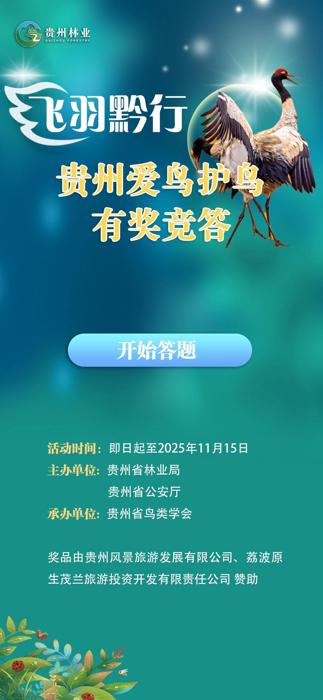 鸟类是自然界中不可或缺的重要成员,是生态系统的关键一环。鸟类在传播种子、控制害虫等方面发挥着不可替代的作用,其存在也是衡量生态环境质量的重要指标。保护鸟类对于维护生物多样性、促进生态平衡具有重大意义。 为加强贵州鸟类保护公益宣传,让更多的青少年们深入了解鸟类、热爱鸟类,进而带动全…